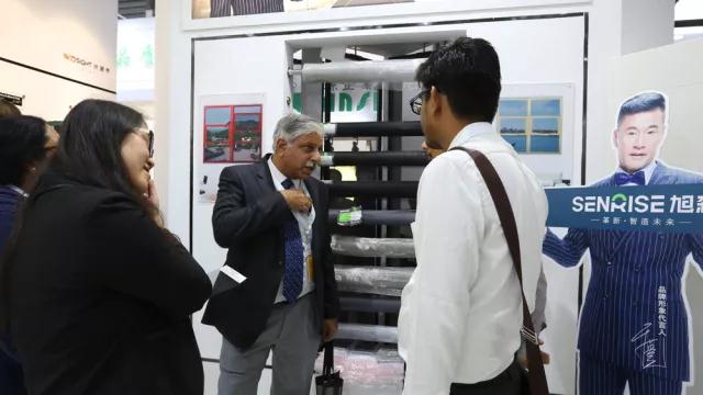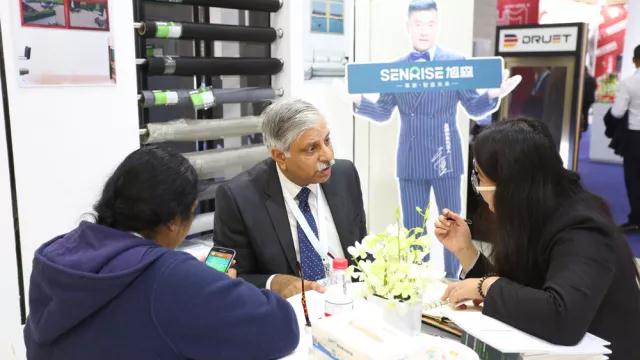 來自世界各國的外國友人與旭森工作人員熱情交談,對旭森產(chǎn)品十分滿意。